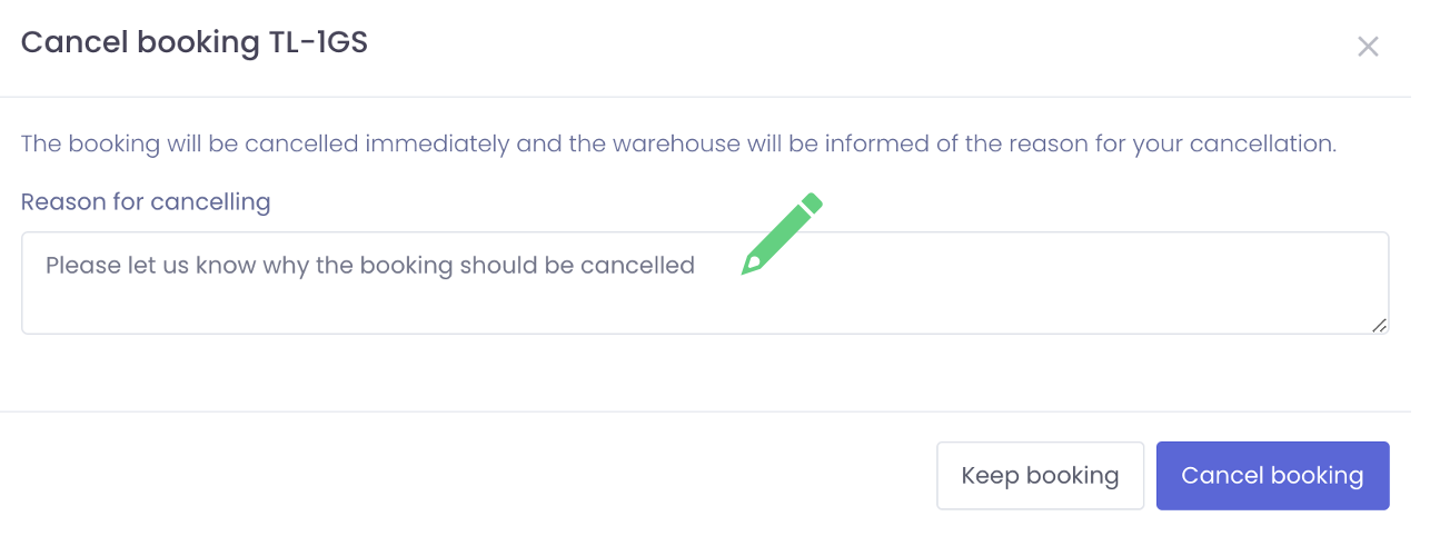 After you have given a reason for the cancellation, you can cancel the booking by clicking on "Cancel booking".