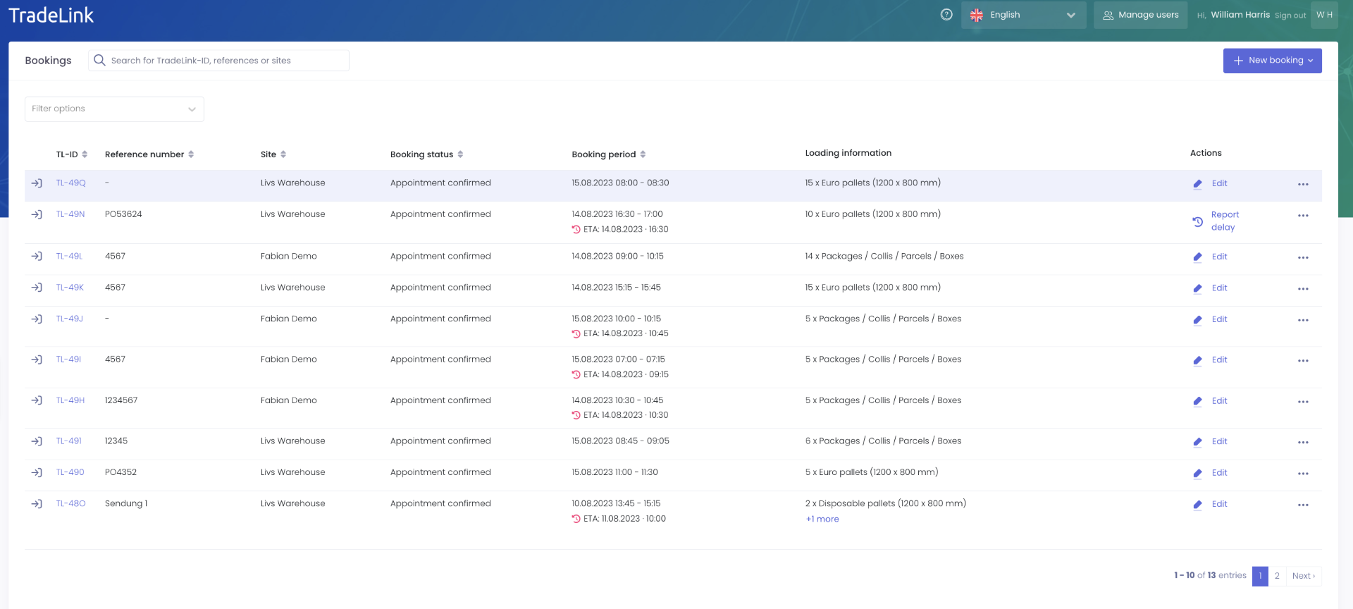 To get started, log into your TradeLink Account. You will see an overview of all of your bookings in the list view.